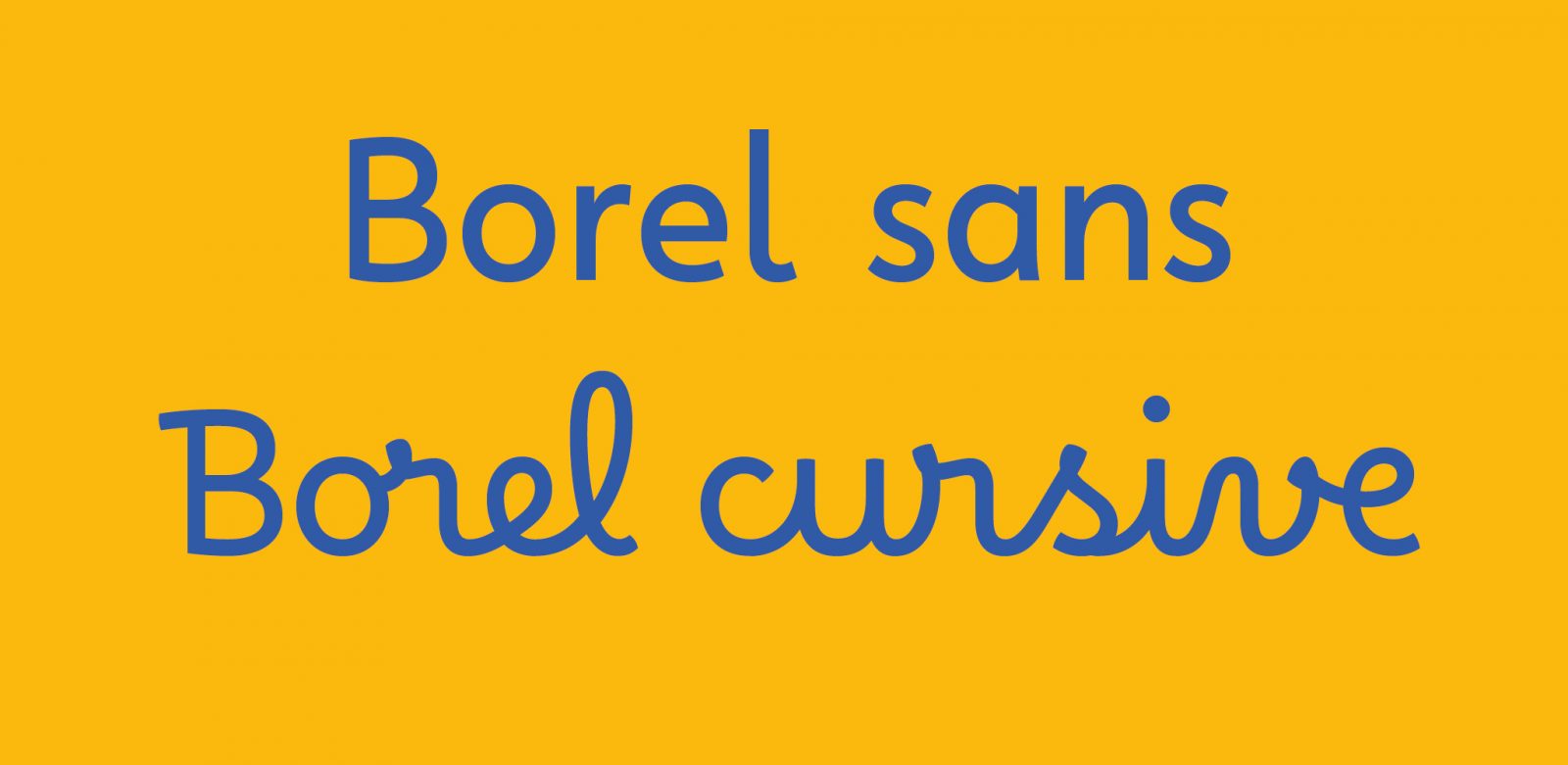 On the other hand, there are typographical parameters which have a negative impact on the effort made for reading, and those have an even worst effect on dyslexic readers. If fonts won’t « boost » reading performances; not to think their design and use may complicate their readability from the point of view of a child learning to read. It is therefore essential to design the pedagogical material in an accessible, ergonomic and pleasant way for a reader of that age. Firstable, roman and cursive typefaces are used together but with no consistency nor harmony in many educational resources. Borel Sans and Borel Cursive were created for that matter. They are quite bold and low contrasted with a slightly arhythmic width. Letters are open and well distinguished while respecting French school cursive writing rules. The roman and the cursive follow the same logic of ductus: the roman is therefore more humanistic than geometric. Furthermore, it seems appropriate to ask how can type design be adapted for learning both reading and writing? The ductus, among others, helps to memorise letters and graphemes and to differentiate them. Tracing letters may clarifies the principle of correspondence between the graphemes and the phonemes. On the other hand, we observe a dichotomy between roman types and cursive script: the signs that one learns for writing are quite different from the signs that one learns for reading, some letters do not even share a common base. A « transitional » font might help to understand the link between those two very different representations of the writing and the one I worked on is specially designed to be graved by CNC machines. I named this font family “Borel” in tribute to Suzanne Borel-Maisonny who was a pioneer in the field of speech therapy.