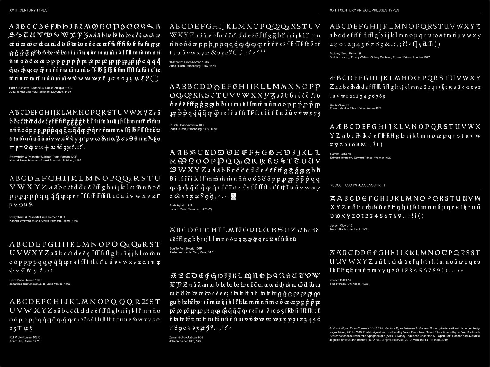 Apart from the three blackletter types (Textura, Bastarda, Rotunda) and Roman, a fifth form, sometimes hesitant, is the subject of our study. Hundreds of Gotico-Antiqua (one of the many ways to name them) were cut between 1459 and 1482. The program comprises different focus, in order to enlight the period: