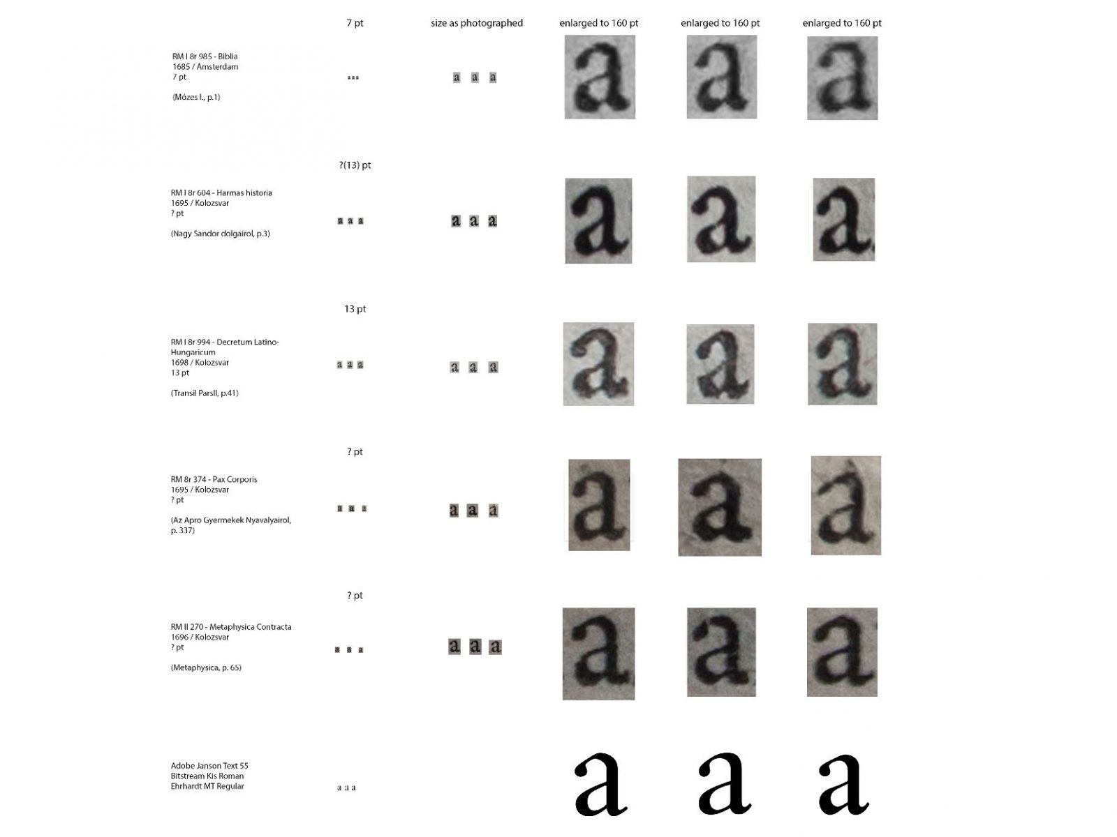 This research deals with an impossible aim and an unfair story at the same time. The unreachable goal was to recreate the typographic liveliness of the letterpress print in a digital font; and on the other hand the injustice was that the typeface of Miklós Kis was for long time attributed incorrectly to Anton Janson.