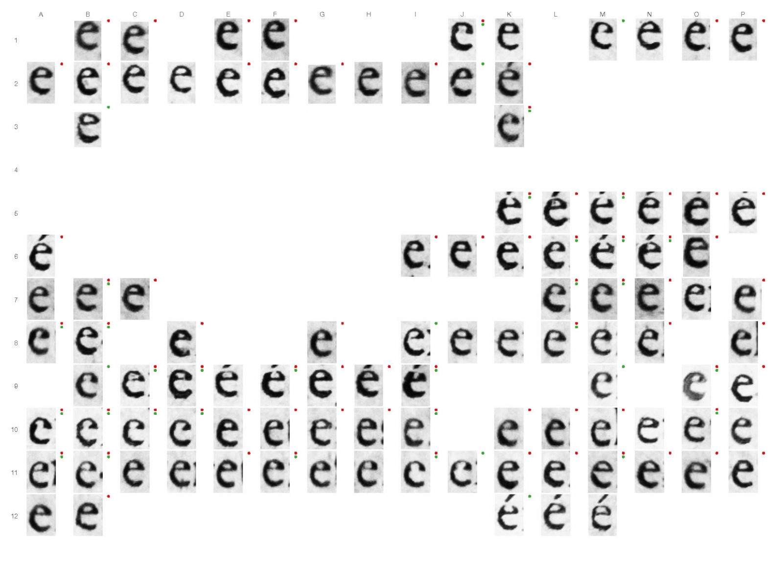 Little by little, I was able to recreate and classify the different types of accidents, therefore I could create a type body which fluctuates between two coordinates. At one end, the absence, the lack of ink, and on the other end its excess. Between the two, a range going from partial letters to the opposite, over inked ones.