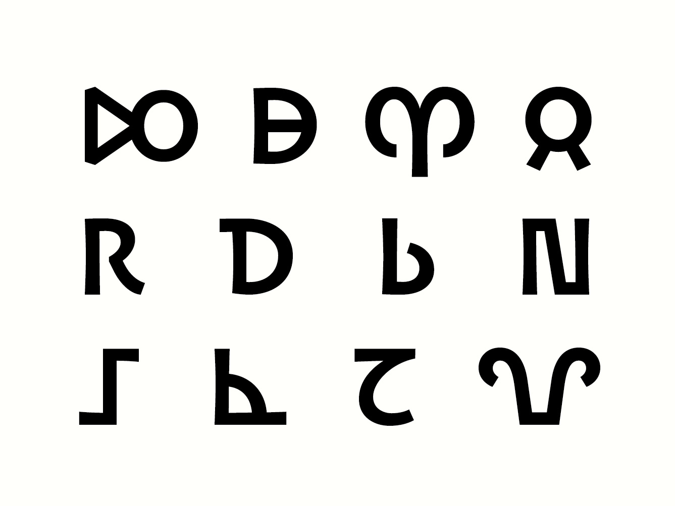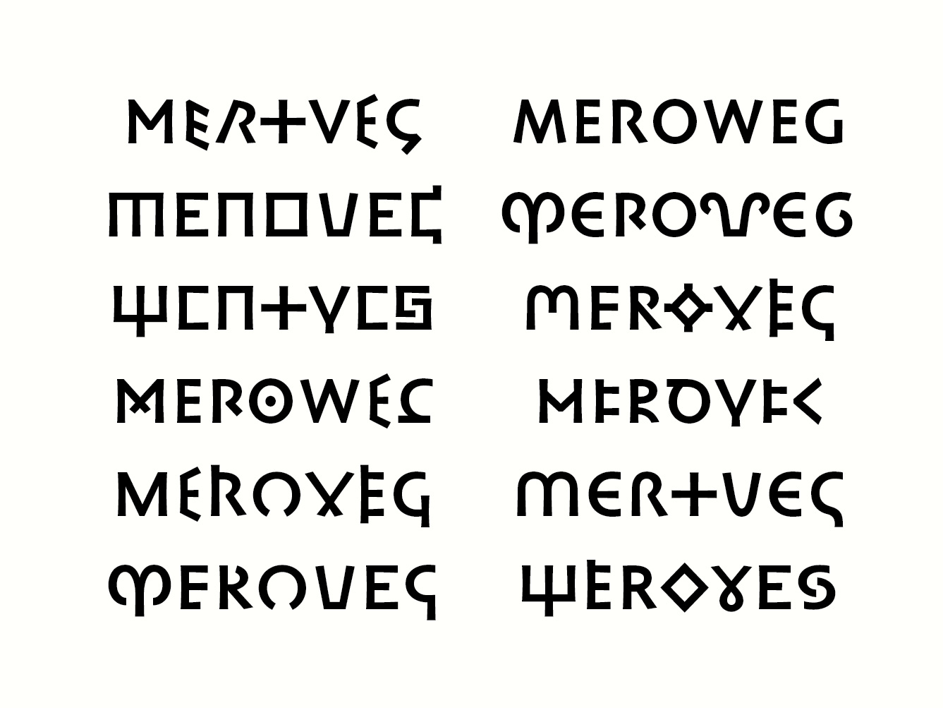 Currently, the Meroweg typeface is designed without serifs to emphasize the multiple letter structures. It is designed with a fairly heavy weight and a very low contrast, to distinguish it from other text typefaces that might be used to set the text around it. Lighter variants of the letters are also integrated to the font, to mark the missing structures, ligatures and damaged letters... The aim is to expand the character set further.