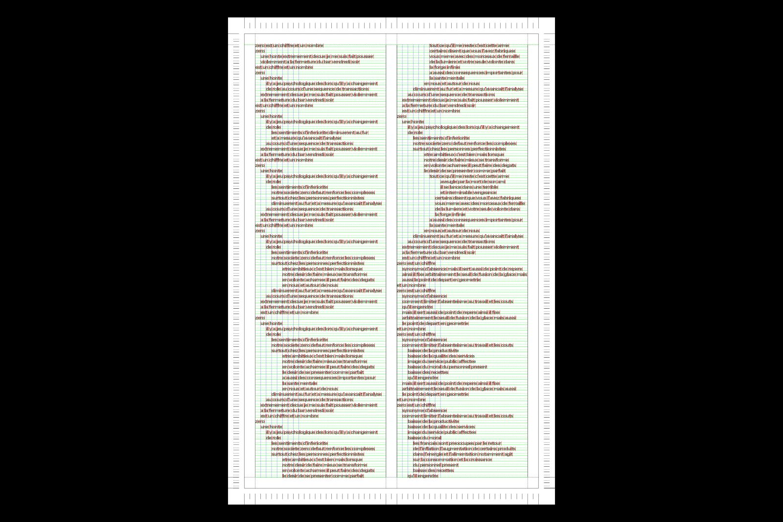 À l’intersection des pratiques poétiques contemporaines et de la typographie, « Programme poétique, système typographique » interroge la systématisation de l’écriture poétique, de la composition typographique et du dessin de caractères. En réponse à la massification de la production de textes liée à l’essor d’Internet, comment développer une pratique de la poésie par l’appropriation de textes issus du web ? Cette approche poétique s’incarne par le développement de protocoles d’écritures, le prélèvement de fragments textuels en ligne, l’utilisation de fonctions propres aux outils numériques tels que « copier / coller » ou encore la programmation d’algorithmes. D’après cette pratique de l’écriture, dans quelle mesure la composition typographique devient un moyen de restituer les gestes de prélèvement opérés ? Comment le dessin d’une police de caractères peut incarner cette écriture ? Écriture poétique, composition typographique et dessin de caractères sont alors corrélés. De la lettre à la page, une même grille régule et contraint le dessin de la police de caractères et la mise en forme du texte. Les gestes graphiques sont réduits à l’essentiel. Un système typographique exacerbé pour un programme poétique total.